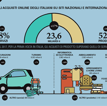 Gli e-shopper italiani che hanno acquistato food online sui siti italiani e stranieri sono passati dal 12% al 24% negli ultimi tre anni: in tale 5 milioni di consumatori per un totale di circa 11 milioni di transazioni.