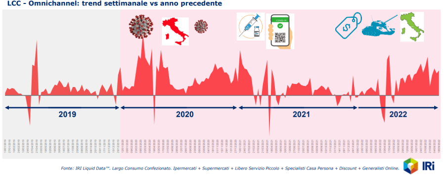 Nota: Largo Consumo Confezionato. 2022: 37 settimane al 18 settembre 2022.