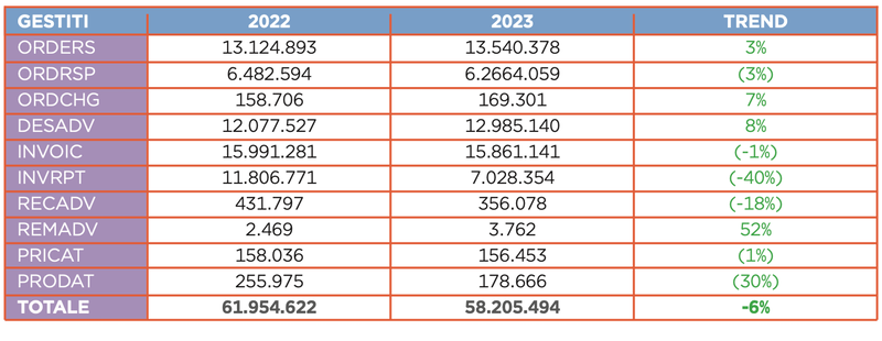 Figura 2 - Numero di messaggi EDI scambiati nel 2023 (dati aggregati)