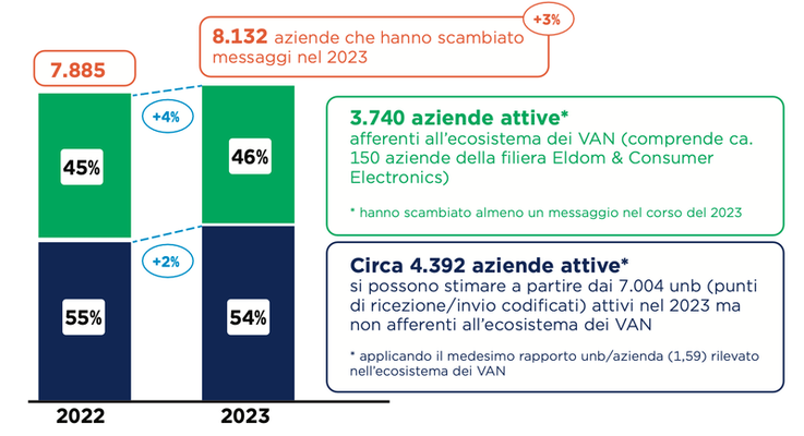 Figura 1 - Le aziende attive in EDI standard GS1 nel 2023 vs 2022