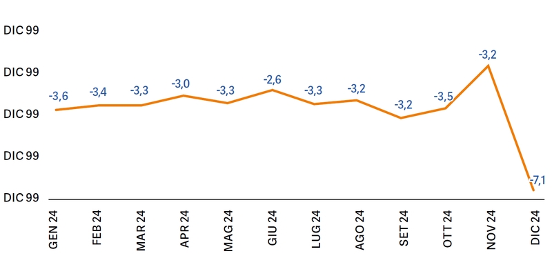 Il 2024 si è chiuso in negativo, in crescita solo l’energia