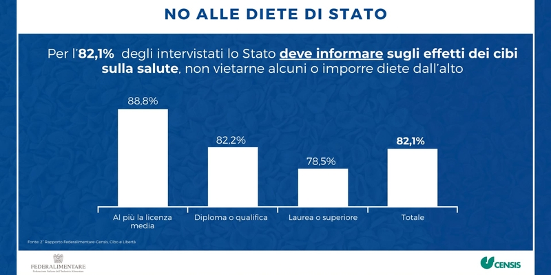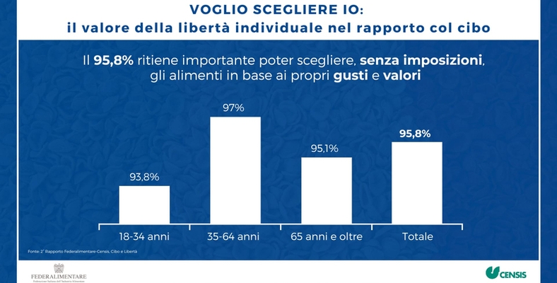 Il rapporto sottolinea con forza come gli italiani abbiano una profonda identità culturale dal punto di vista alimentare e non gradiscano interferenze esterne sulle proprie scelte a tavola: l'89,1% degli intervistati non gradisce che gli venga detto cosa e quanto mangiare e il 95,8% ritiene importante poter scegliere gli alimenti senza imposizioni, in base ai propri gusti e valori.