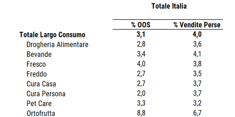 Figura 1 - Percentuale di out-of-stock e vendite perse