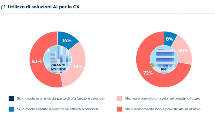 Il 65% non raccoglie in modo sistematico i feedback dei clienti, il 27% non svolge alcuna analisi sui dati e solo l’8% ha già introdotto logiche predittive o prescrittive.