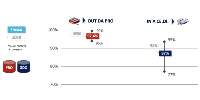 La GDO, infatti, tende a valutare il rispetto non solo della data di consegna, ma anche della fascia oraria, perché entrambi i parametri sono determinanti al fine di organizzare la ricezione della merce nei Ce.Di.